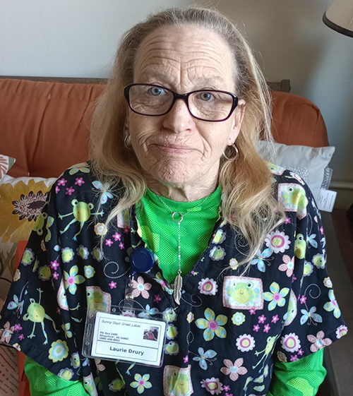 Mary’s favorite part about working for Sunny Days Great Lakes is getting to help each client be in their own home and the flexibility that the job provides. Her advice for other employee’s is “…go into each situation with a positive attitude…listen to the clients needs. Help them with their needs and show them respect.” When asked about her favorite Sunny Days memory she said there were too many to choose just one! Her life’s mantra is “…enjoy each day and bring happiness to the less fortunate.”